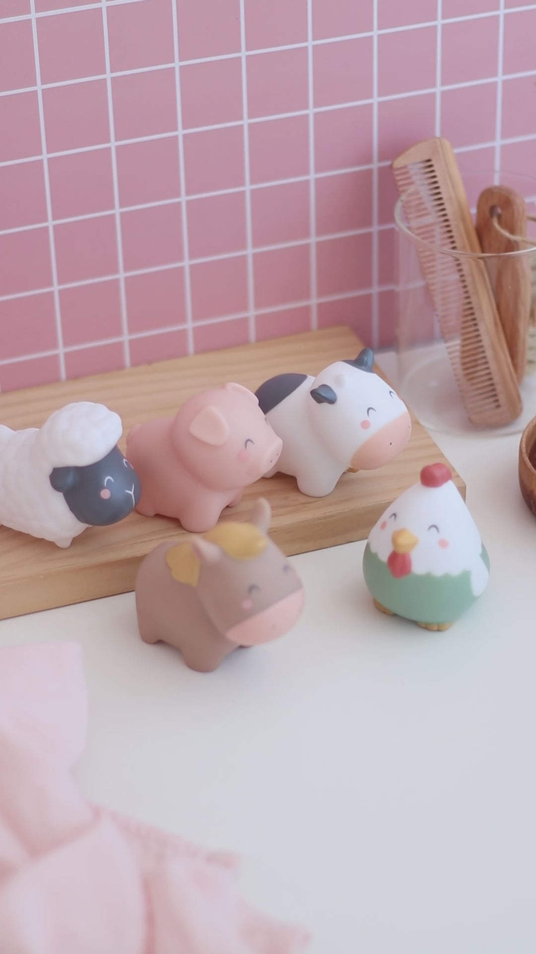 Vom Bauernhof... in die Badewanne! Diese Familie von kleinen Tieren macht jedes Bad zu einem Abenteuer auf dem Land! Dank des lustigen Designs, der weichen Oberfläche und der schönen Farben ist der Spaß garantiert.