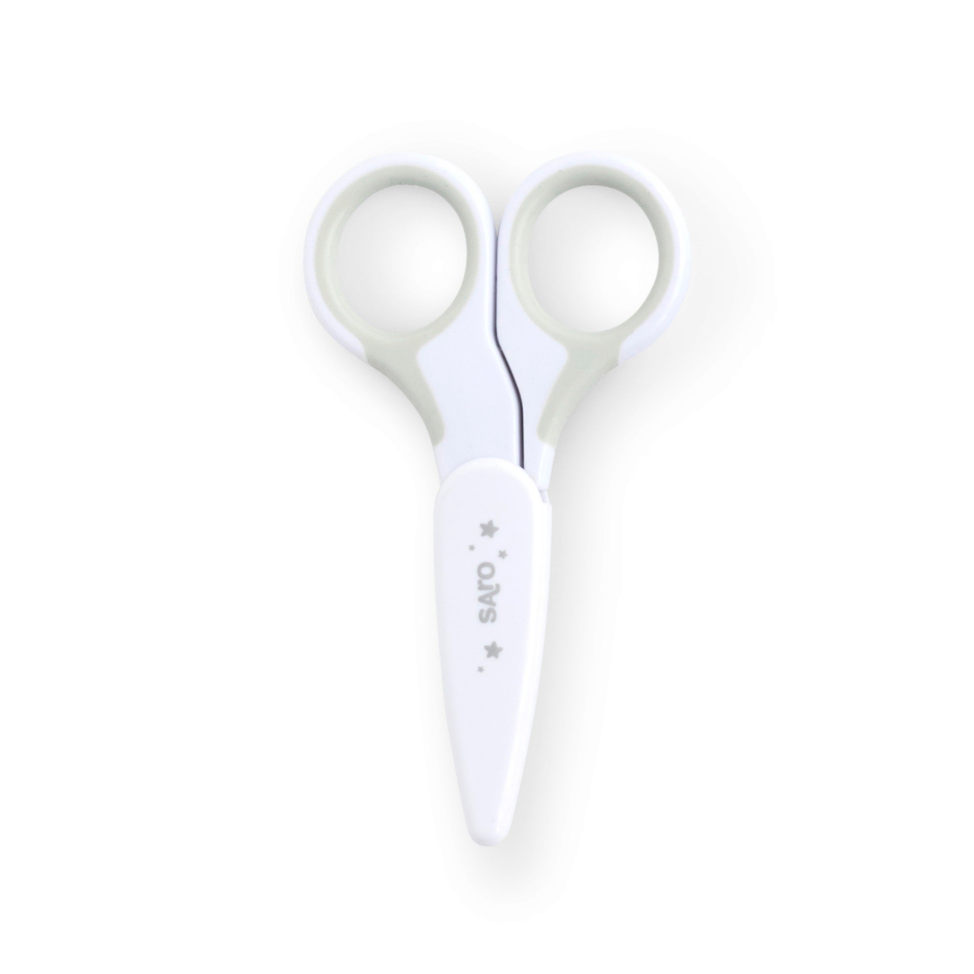 Die Saro-Babyschere ist mit einer Sicherheitsabdeckung und abgerundeten Spitzen versehen. Dadurch ist sie für das Baby sicherer und für die Eltern einfacher zu handhaben.