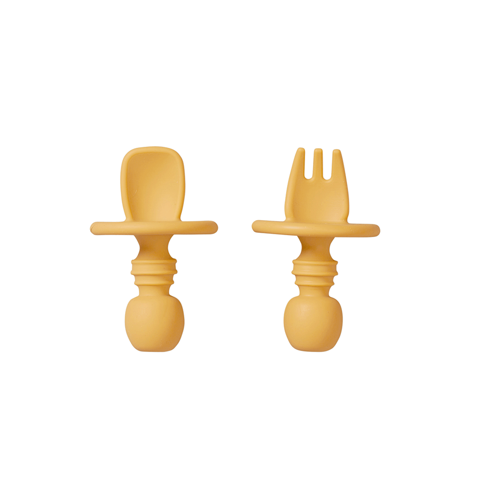 Die Besteck ist speziell entwickelt, damit sie für kleine Hände leicht zu greifen sind. Sie passen sich den Bedürfnissen des Kindes an und ermöglichen, die Nahrung auf einfachste Weise zu erfassen. Der Silikongriff ist sehr weich und bietet einen festen Halt.