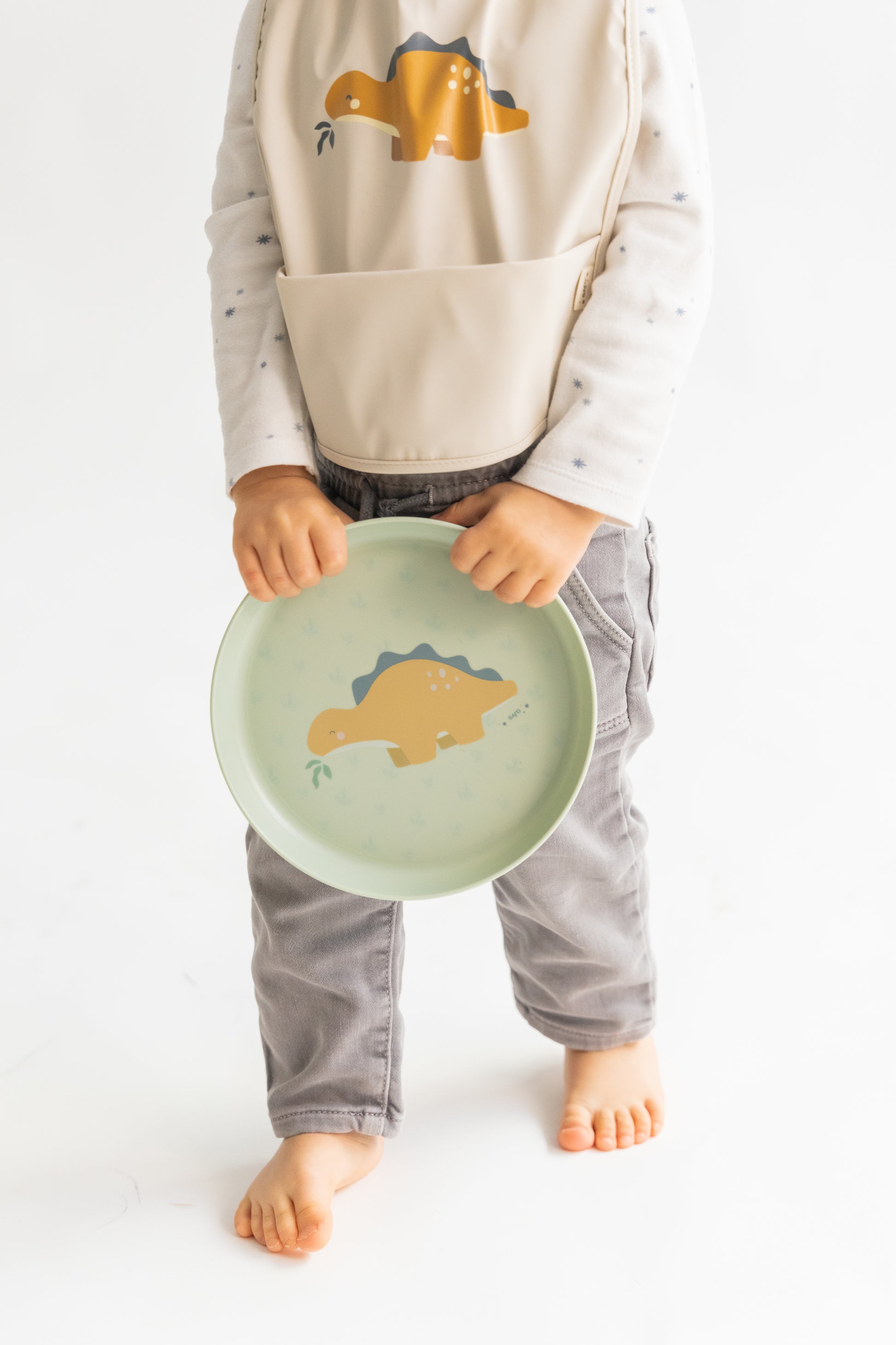 Dank der praktischen Auffangschale an der Vorderseite, ist es perfekt beim Essen und sehr nützlich für den Einsatz bei kreativen Aktivitäten wie Malen oder Spielen mit Spielknete. Es wird empfohlen, das Produkt vor dem ersten Gebrauch in der Maschine kalt zu waschen. Für die beste Pflege danach von Hand waschen.