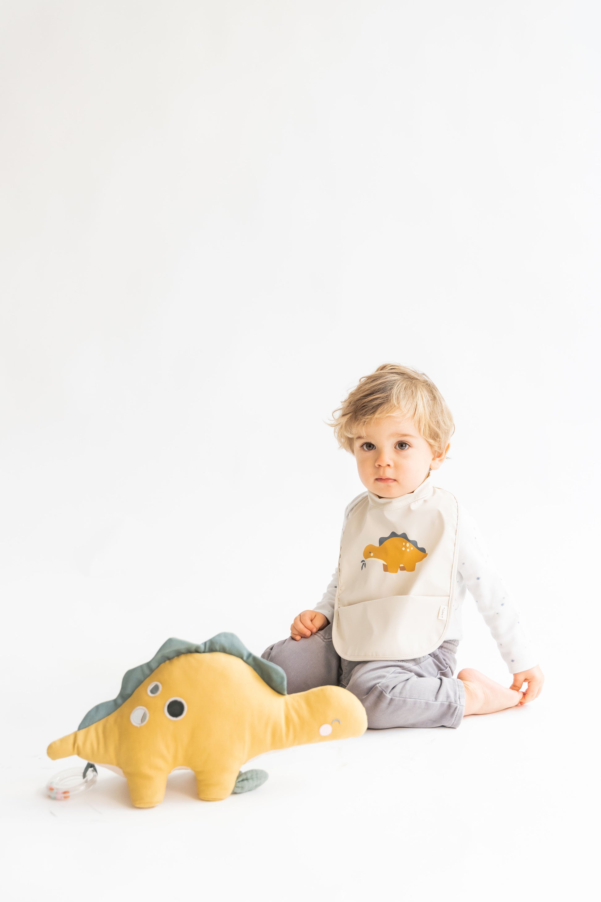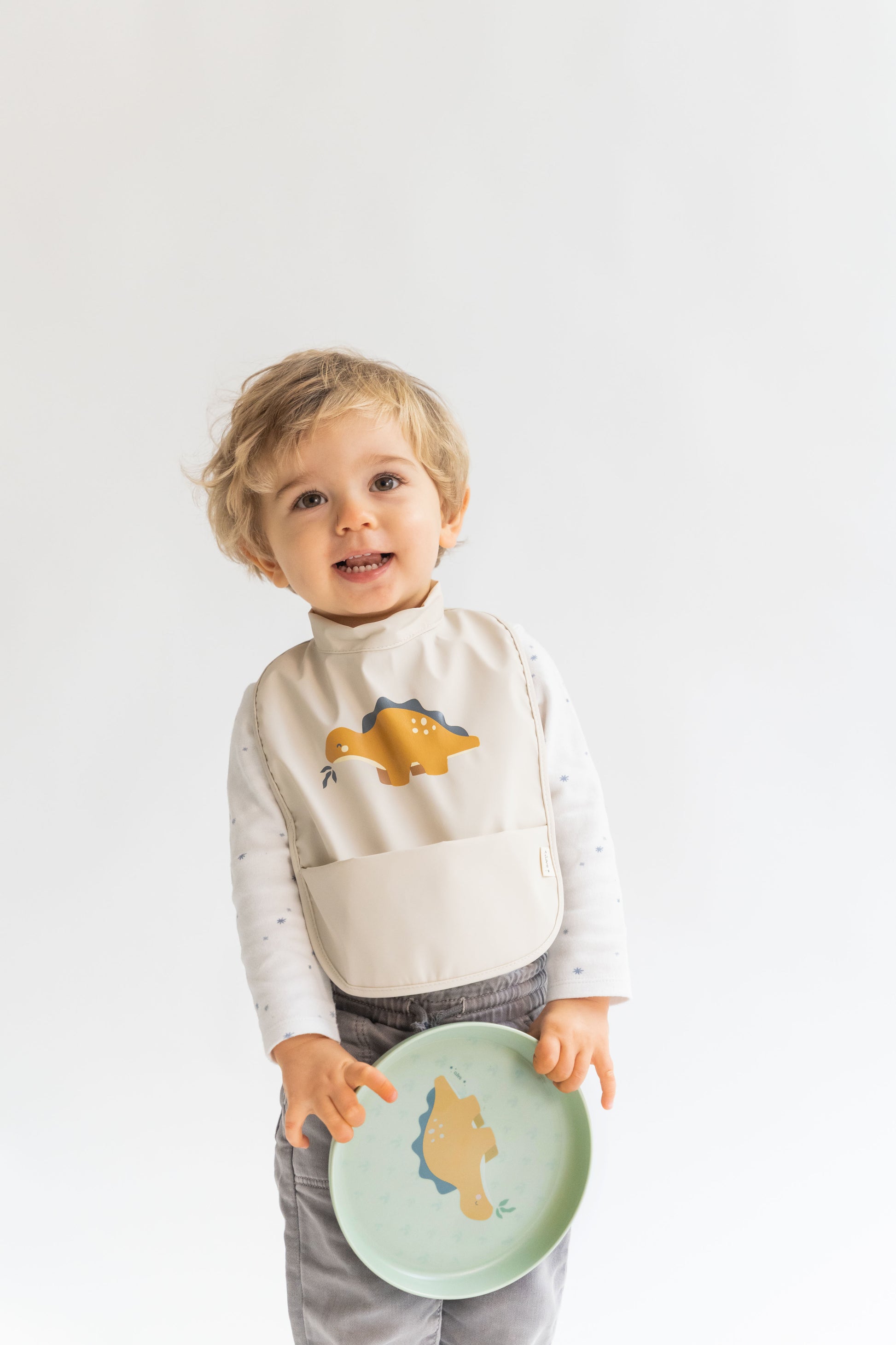 Dank der praktischen Auffangschale an der Vorderseite, ist es perfekt beim Essen und sehr nützlich für den Einsatz bei kreativen Aktivitäten wie Malen oder Spielen mit Spielknete. Es wird empfohlen, das Produkt vor dem ersten Gebrauch in der Maschine kalt zu waschen. Für die beste Pflege danach von Hand waschen.