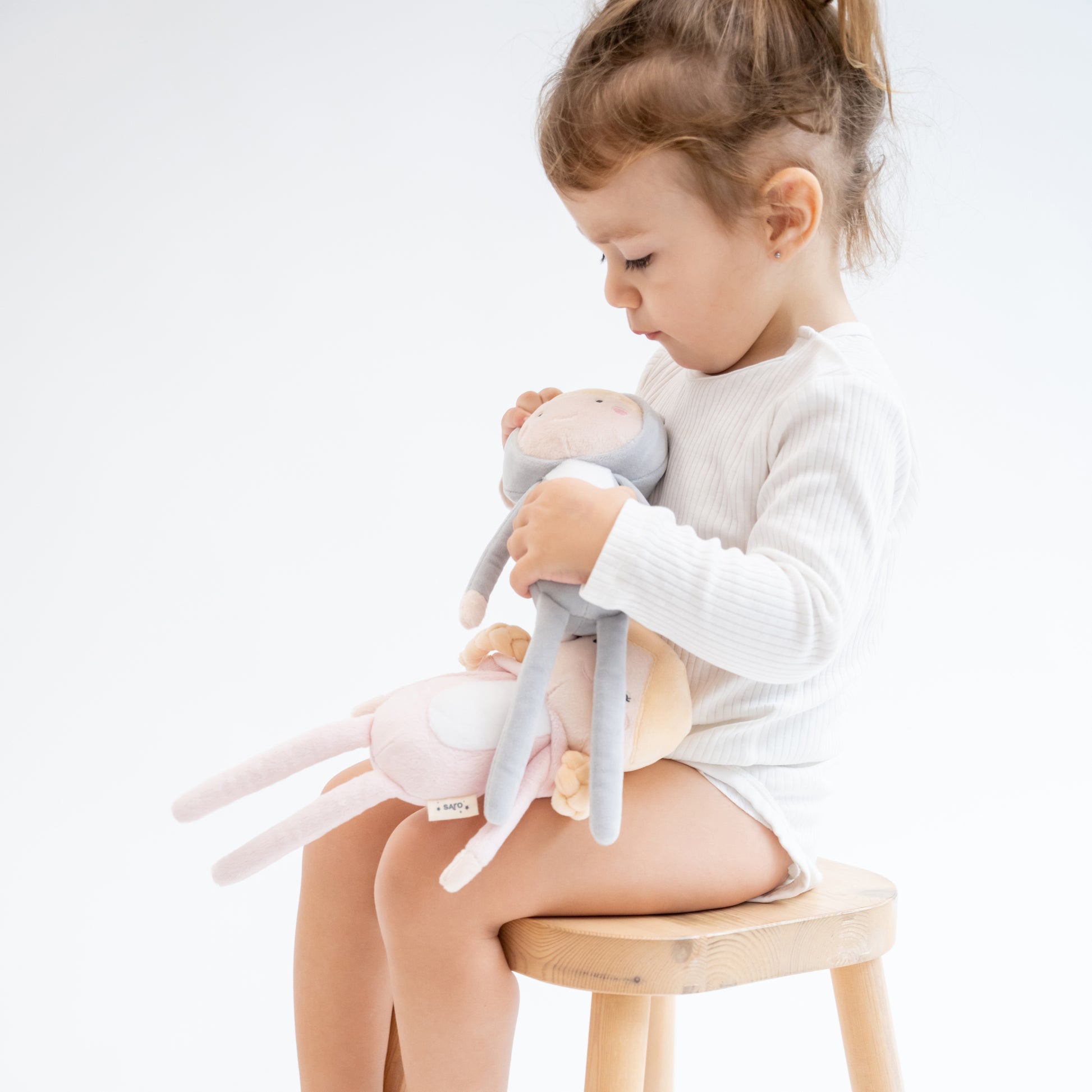 Bereit für ein neues Abenteuer? Lerne zwei neue Freunde kennen, Leo und Luna, die Dein Kind in seinen Nächten der Ruhe und bei den lustigsten Abenteuern begleiten werden. Diese Stoffpuppen bieten Sicherheit und Geborgenheit und helfen durch Nachahmungsspiele dabei, Emotionen zu erkennen und verschiedene soziale Fähigkeiten zu entwickeln. Weich und knautschig sind sie vom ersten Tag an bereit für Kuscheleinheiten und Umarmungen!