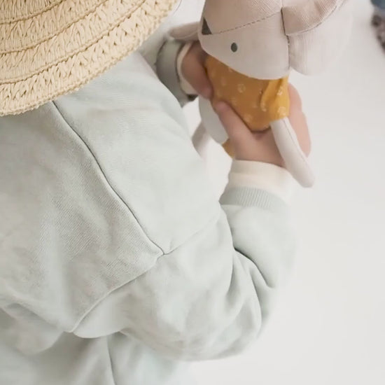 Diese entzückende kleine Mäuschen begleiten Dein Kind in seinen Nächten voller Ruhe und bei den lustigsten Abenteuern. Sie bietet Sicherheit und Geborgenheit und hilft durch Nachahmungsspiele dabei, Emotionen zu erkennen und verschiedene soziale Fähigkeiten zu entwickeln. Weich und knautschig sind sie vom ersten Tag an bereit für Kuscheleinheiten und Umarmungen! Hergestellt aus 100 % Baumwolle.