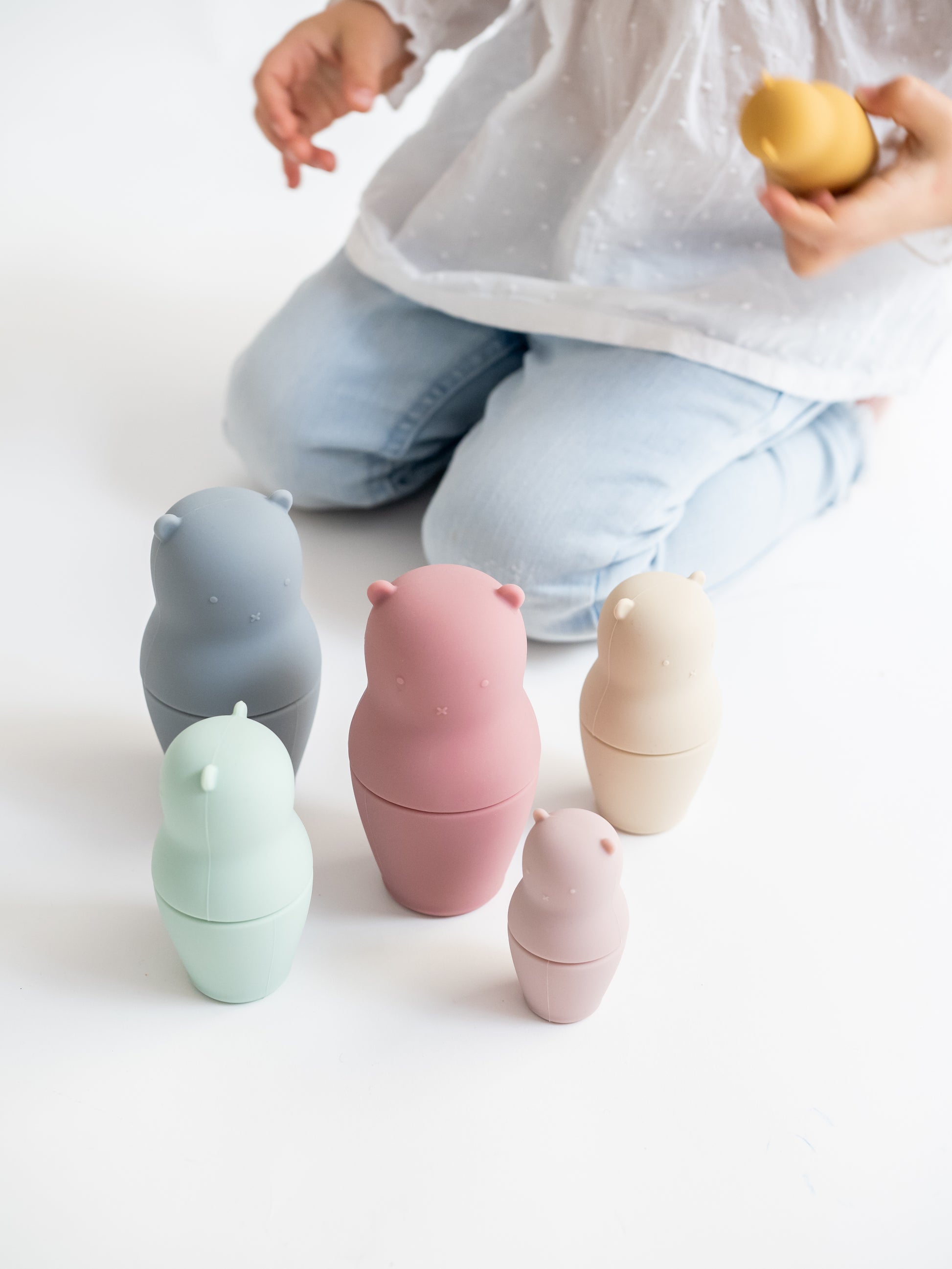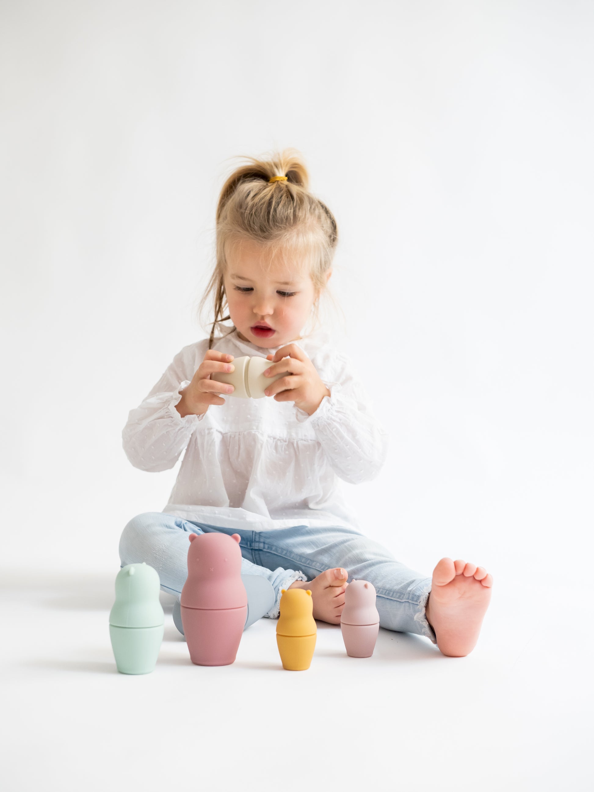 Dieses Spielzeug besteht aus vier stapelbaren Bären, die von der traditionellen russischen Matroschka inspiriert sind. Bei diesen befindet sich im Inneren jeder Puppe eine weitere kleinere. Das Spielzeug regt die Kleinen dazu an, die Bären nach Größe und Farbe zu klassifizieren. Beim Versuch, jedes Element zu platzieren, werden Fähigkeiten wie Logik, Kreativität und Gleichgewicht gefördert.