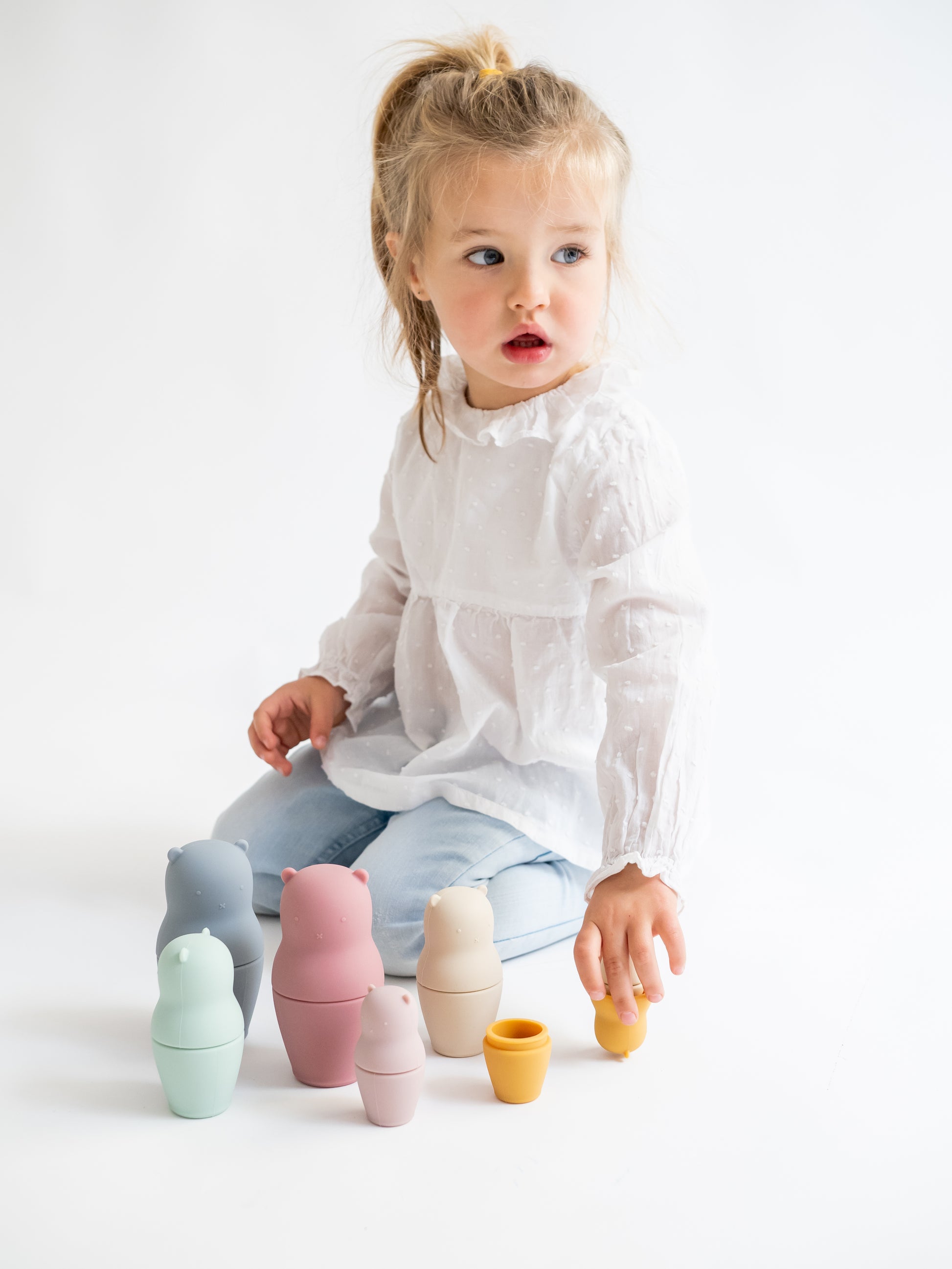 Dieses Spielzeug besteht aus vier stapelbaren Bären, die von der traditionellen russischen Matroschka inspiriert sind. Bei diesen befindet sich im Inneren jeder Puppe eine weitere kleinere. Das Spielzeug regt die Kleinen dazu an, die Bären nach Größe und Farbe zu klassifizieren. Beim Versuch, jedes Element zu platzieren, werden Fähigkeiten wie Logik, Kreativität und Gleichgewicht gefördert.